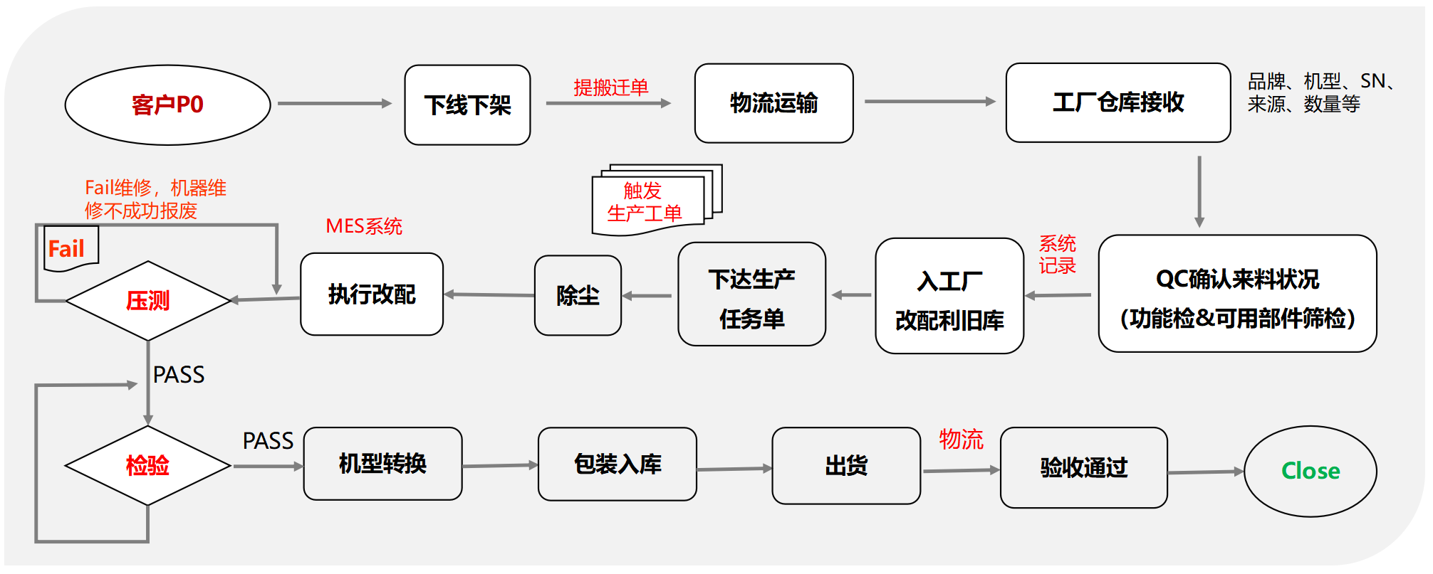 響應國家對于碳中和、碳達峰,資源再利用的政策號召,采用創新模式,將IDC機房退役的IT設備,通過硬件升級改配、功能檢測等工序改造,延續設備的使用周期,實現資源再利用目標;